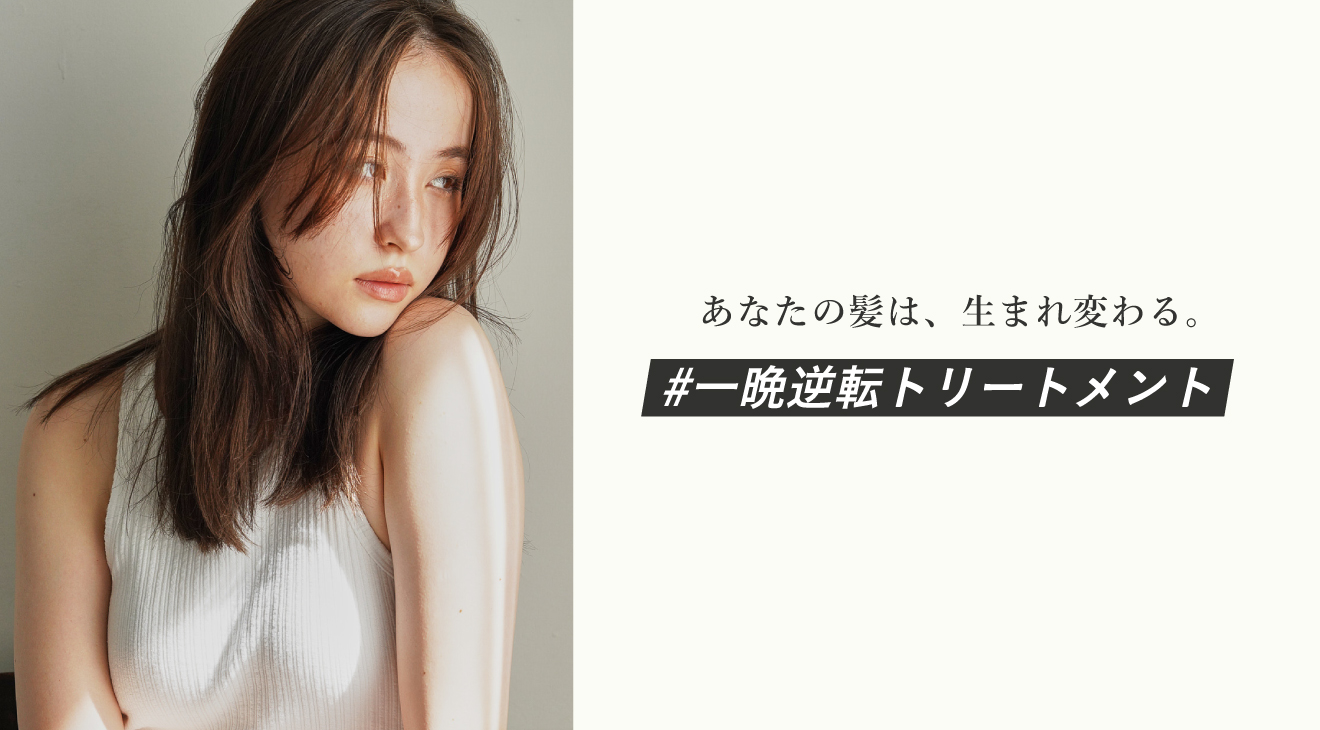 パサつき・広がり・うねり髪を、思わず触れたくなるサロン帰りの質感へ導く「#一晩逆転トリートメント」です。